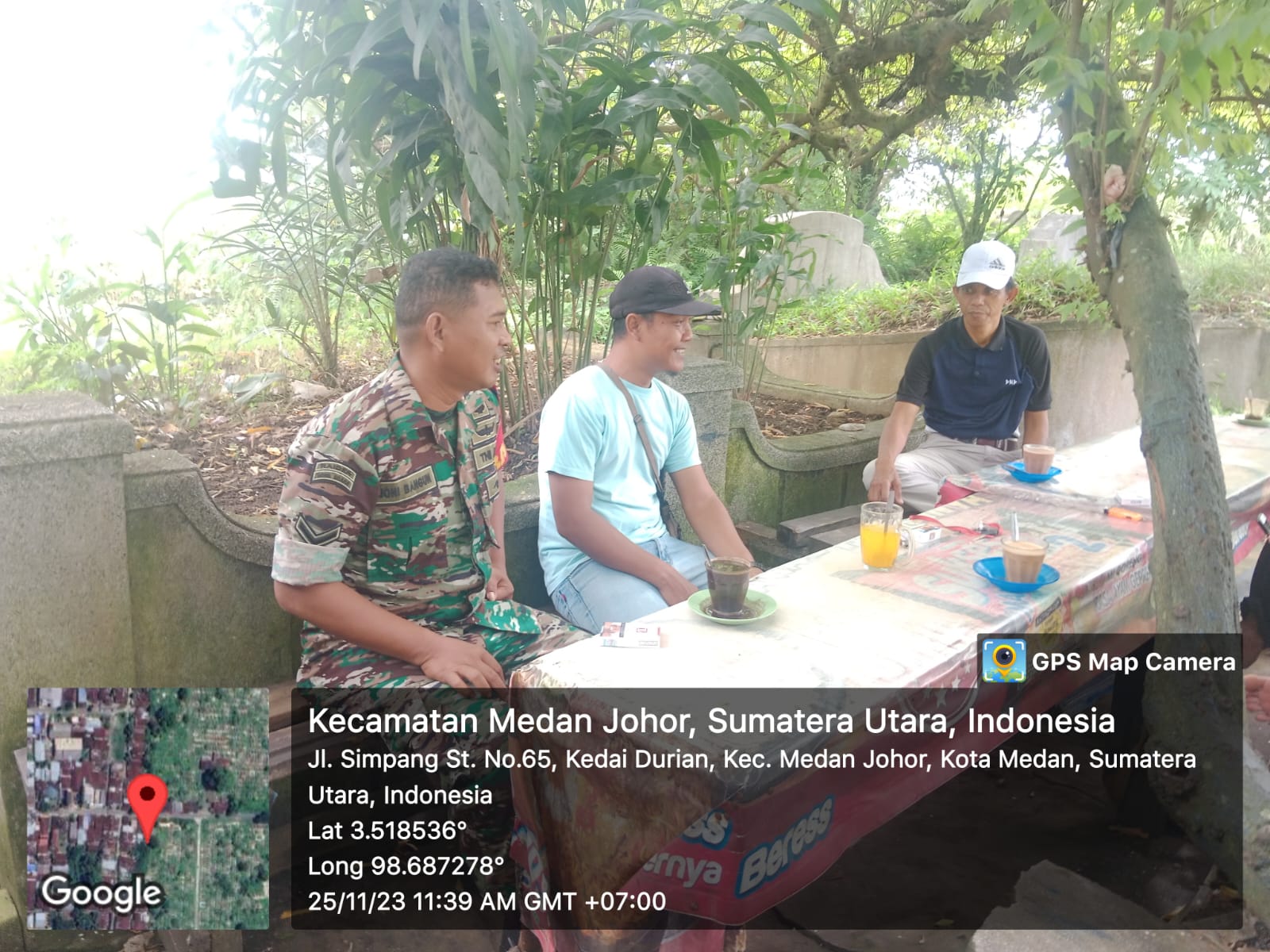 Babinsa Koramil 0201 Medan 15/DELI TUA, Serda Joni Bangun melaksanakan giat komsos bersama warga membahas tentang kamtibmas yang ada di wilayah binaannya. Kegiatan tersebut dilaksanakan di Dusun 1 Desa Suka Makmur Kabupaten Deli Serdang, Sabtu(25/11/2023)