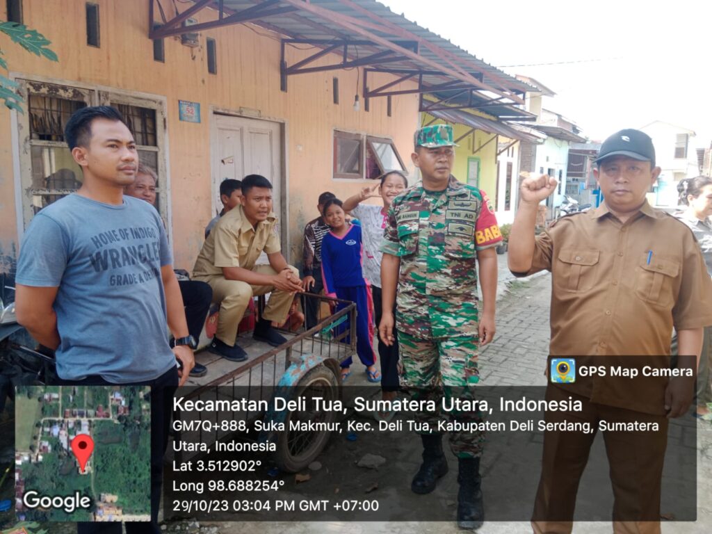 Babinsa Koramil 0201 Medan 15/DELI TUA, Serda Joni Bangun melaksanakan giat komsos bersama warga membahas tentang kamtibmas yang ada di wilayah binaannya. Kegiatan tersebut dilaksanakan di Dusun 4 Desa Suka Makmur Kabupaten Deli Serdang, Minggu(29/10/2023)