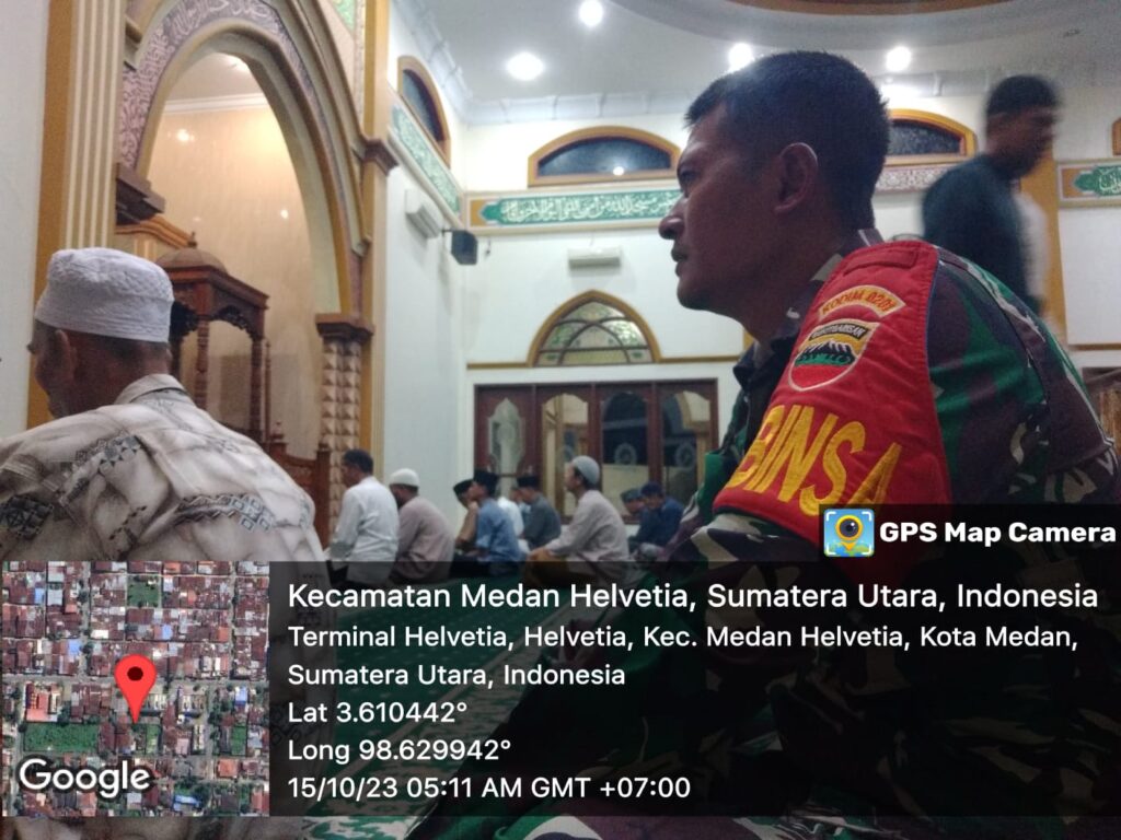 Medan Helvetia,Safari Subuh adalah untuk bersama memakmurkan masjid melalui Sholat Subuh serta dapat untuk Mempererat Talisilaturahin Sesama Masyarakat dan Para jamaah Masjid Al-Hikmah,Babinsa Koramil 0201-06/MS Kodim 0201/Medan Sertu Wiyono ikut berperan aktif Setiap Minggunya untuk Melakukan Safari Subuh melalui Sholat Subuh Berjamaah bersama Para jamaah masjid yang ada diwilayah Binaan untuk Minggu ini Dimasjid AL-HIKMAH Jalan Matahari Kel.Helvetia Kec.Helvetia.Minggu(14/10/23)