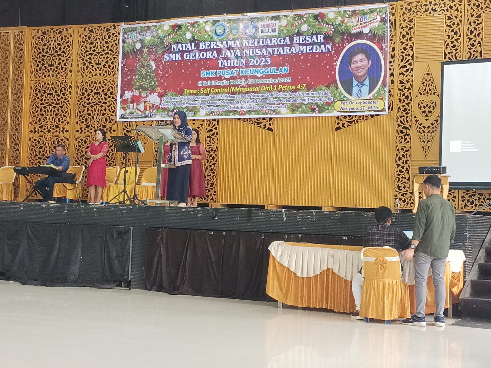 Perayaan Natal bersama keluarga besar SMK Gelora Jaya Nusantara ini merupakan kegiatan yang tiap tahun diadakan oleh pihak sekolah. Tema yang diusung pada tahun ini adalah “SELF CONTROL ( PENGENDALIAN DIRI ) ” yang diambil dari 1 Petrus 4:7.