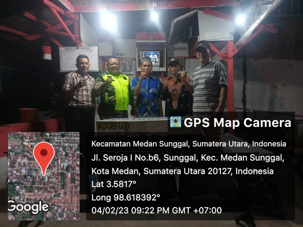 Medan Sunggal,Babinsa Koramil 0201-06/MS,Kodim 0201/Medan An.Pelda I.Simatupang melakukan Patroli Kamtibmas di Salah satu Lingkungan yang berada di jalan Seroja 1 lk 4,yang mana lingkungan tersebut setiap harinya melakukan Pos Kamling/Ronda secara Bergiliran antar Warga.Jl.Seroja 1 Lk 4 Kel.Sunggal Kec.Medan Sunggal,Sabtu.04/02/23