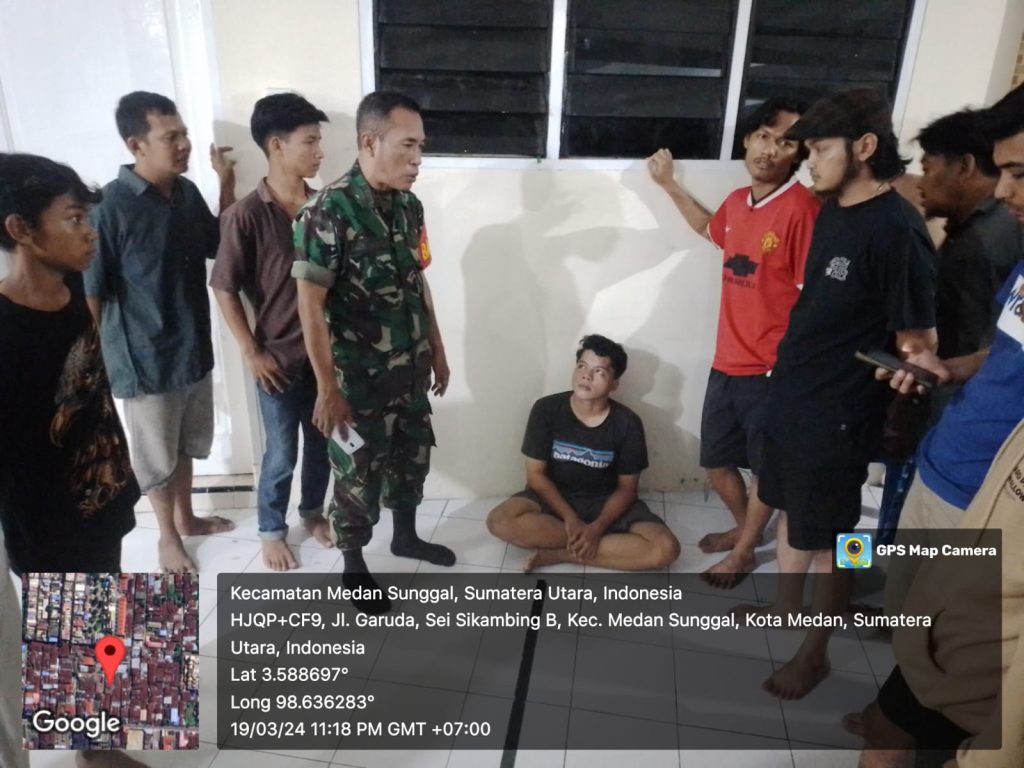 Medan. Babinsa Koramil 0201 – 06 / MS,Kodim 0201/Medan Kel.Sei Sikambing B Kec.Medan Sunggal Peltu Subiyanto Melaksanakan Monitoring Wilayah,Babinsa Menerima Laporan Dari Kepling 05 Jln Garuda Kel.Sei Sikambing B (Sdri Nia Astriani ) Adanya Penangkapan Oleh Warga Masyarakat Sekitar Masjid Al Basyir Tentang Pelaku Pencurian Uang Infaq Masjid Yg Sering Di Lakukan Pelaku ,pada pukul 22.00 Wib diMasjid Al Basyir Jln Garuda LK 05 Kel.Sei Sikambing B Kec.Medan Sunggal.Selasa(19/03/24)
