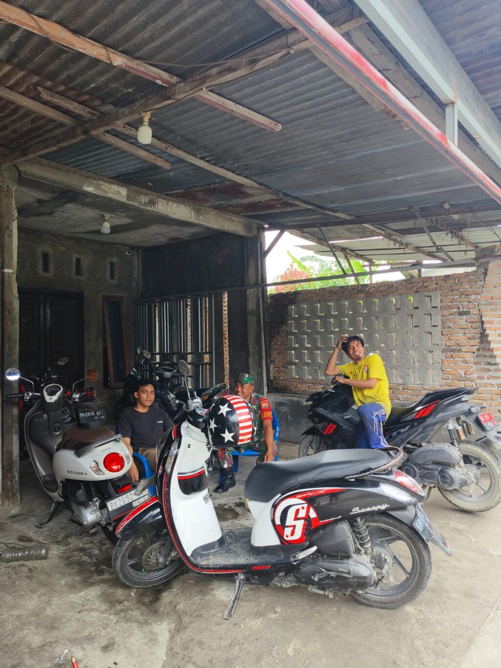 Percut Sei Tuan; Babinsa Koramil 0201-13/PST Kopda Irwansyah melaksanakan Komunikasi Sosial / komsos dengan Bapak Panzul salah satu pemilik bengkel sepeda motor yang berada di jln Duku Raya Dusun 16 Desa Bandar Khalipah Kecamatan Percut Sei Tuan, Kabupaten Deli Serdang, Senin (25/12/2023).