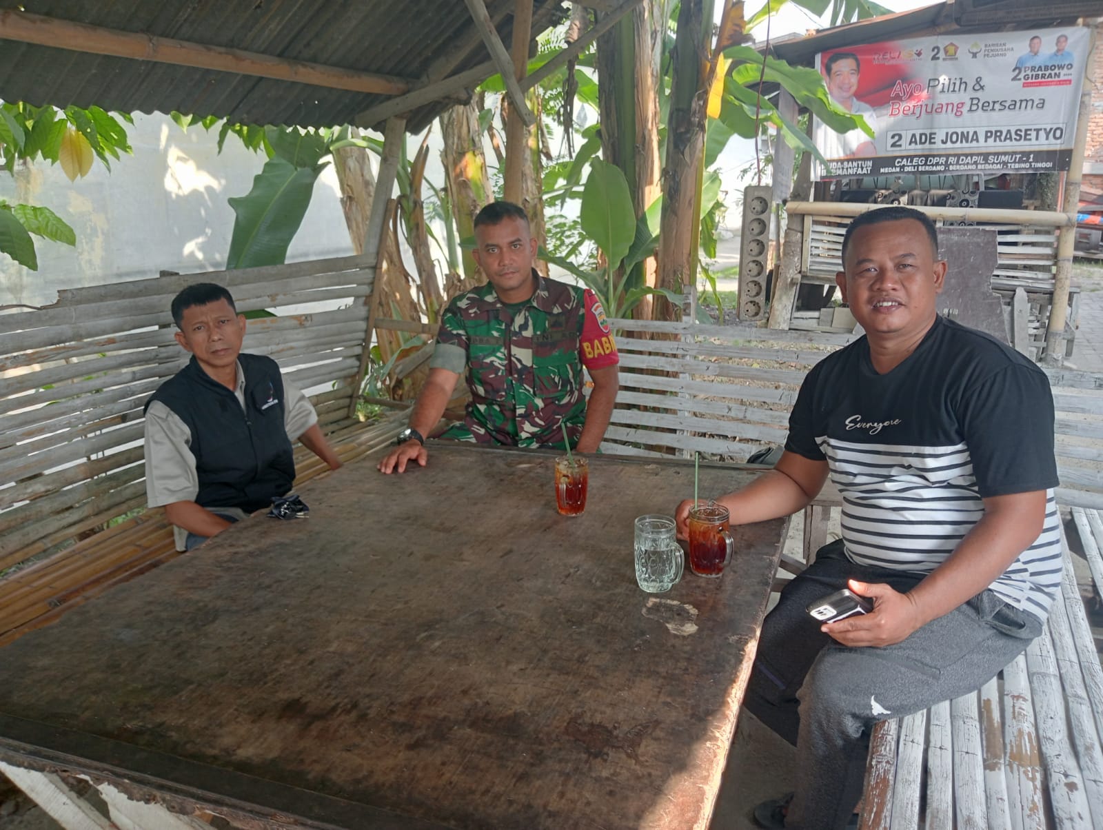 Babinsa menegaskan agar warga menjaga kebersamaan setelah pencoblosan pilpres, jangan ada lagi perbedaan, itu sudah berlalu, dan mari menjalin kerukunan dan beraktivitas seperti biasa.