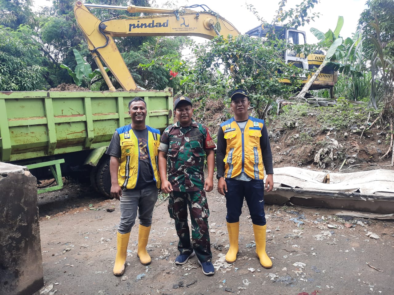 Babinsa Serda Juwanda Bersama Aparat Terkait Amankan Percepatan Penanggulangan Longsor Ditanggul Sungai Akibat Dampak Banjir