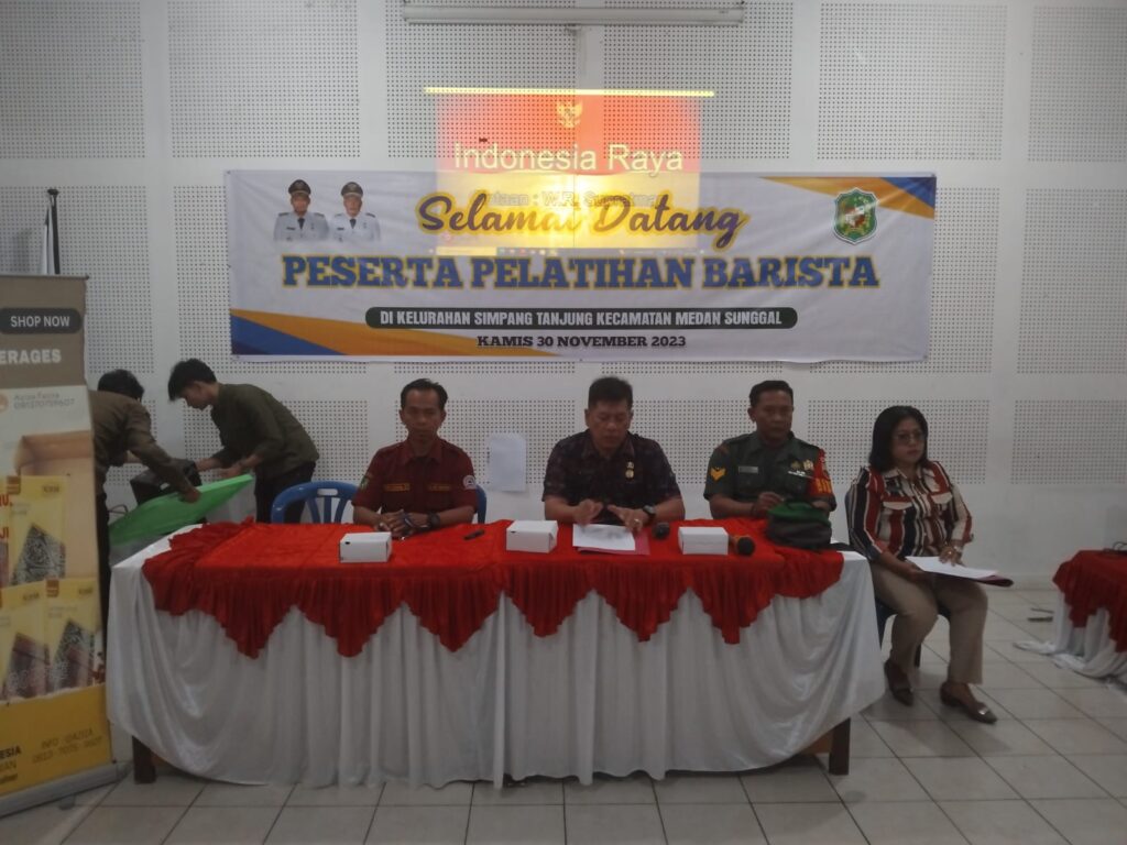 Kata sambutan dari protokol(MC),Menyanyikan lagu Indonesia Raya,Pembacaan Do’a,Laporan pelaksanaan kegiatan pelatihan Barista dilanjutkan Kata sambutan Camat medan sunggal Bapak T.Khairuniza.S.Sos.MAP,Paparan kopi Barista Oleh Bapak Rizky,dilanjutkan Diskusi tanya jawab dan Fhoto Bersama