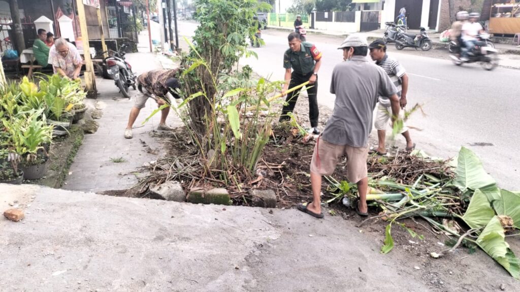 Babinsa bergotong royong dengan Kepling dan masyarakat dalam menjaga kebersihan kelurahan teladan timur