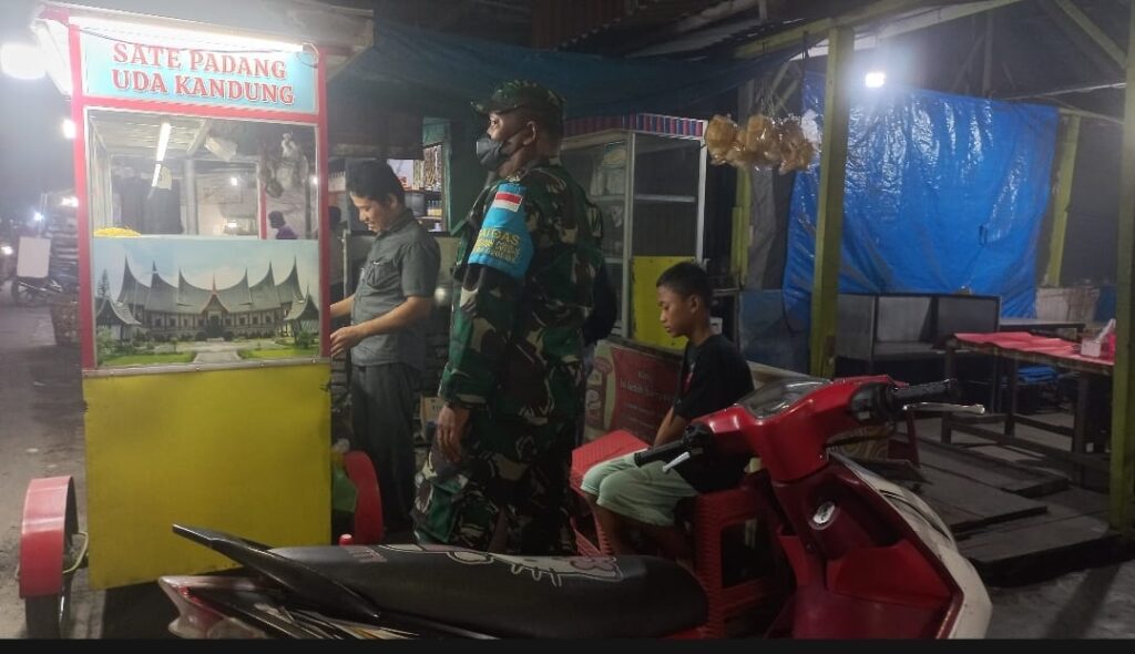 Medan – Babinsa Koramil 0201-11/MD, Kodim 0201/Medan,Peltu AE.Indra dan Serda Nanang terus melaksanakan Disiplin Prokes kepada masyarakat yang berkumpul di Jln. Kl Yos Sudarso km 12,5 Kelurahan Titi Papan Kec. Medan Deli. Kamis 03/11/2022.