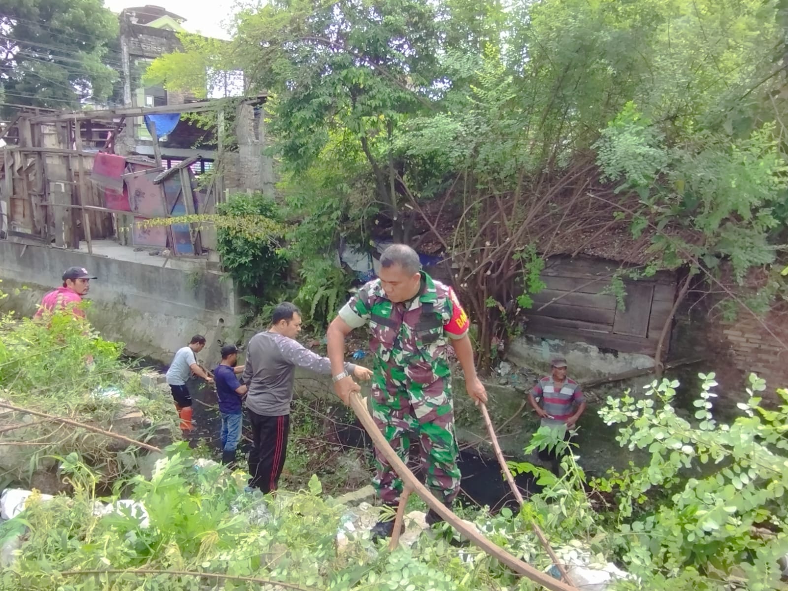 BABINSA TSM Ill 0201-03/MD SERDA AHMAD SUYADI BERSAMA UNSUR KECAMATAN MEDAN DENAI MELAKSANAKAN GOTONG ROYONG
