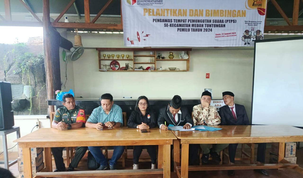 Medan – Bertempat di Sapo Viredes Jln Bunga Rampai III, Serda C Sitinjak Babinsa Koramil 07/Medan Tuntungan Kodim 0201/Medan menghadiri kegiatan pelantikan anggota Pengawas tempat pimilhan suara ( PTPS )Kecamatan Medan Tuntungan pada pemilu tahun 2024. Senin (22/01/2024).
