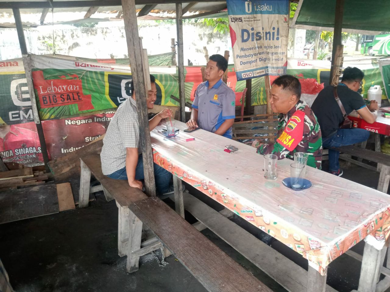 Babinsa Koramil 0201-08/MA Kodim 0201/Medan Serma Wargono aktif lakukan Komunikasi Sosial (Komsos), pada kali ini komsos dikakukan bersama warga binaan di salah satu warung kopi yang bertempat di Jalan Eka Rasmi, Kelurahan Gedung Johor, Kecamatan Medan Johor, Minggu (15/01/2023).