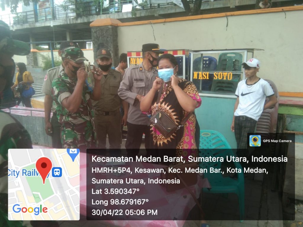 Untuk menghimbau masyarakat agar tetap mematuhi Protocol Kesehatan Bati Tuud Koramil 0201-13/PST Peltu Eliseser Sitorus dan 7 Personel Kodim 0201/Medan beserta Polresta Medan dan Pemko Medan melaksanakan Patroli Prokes dan kegiatan Rutin yang ditingkatkan ( KRYD ). Sabtu (30/4/2022)