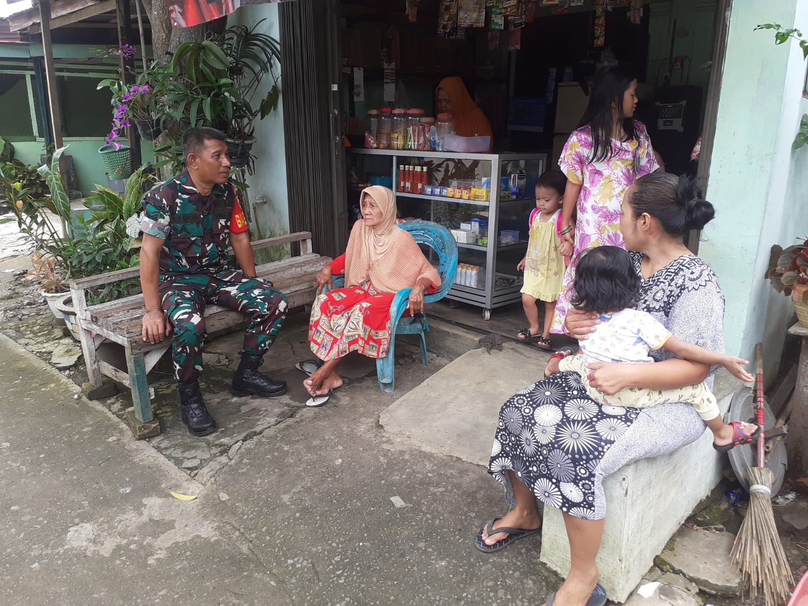 Babinsa Serka S.Siregar yang sudah merasa dekat dan akrab dengan warga masyarakat tersebut menyapa langsung ibu-ibu yang tengah berbelanja sembako untuk kebutuhan rumah di warung milik Ibu Mala.
