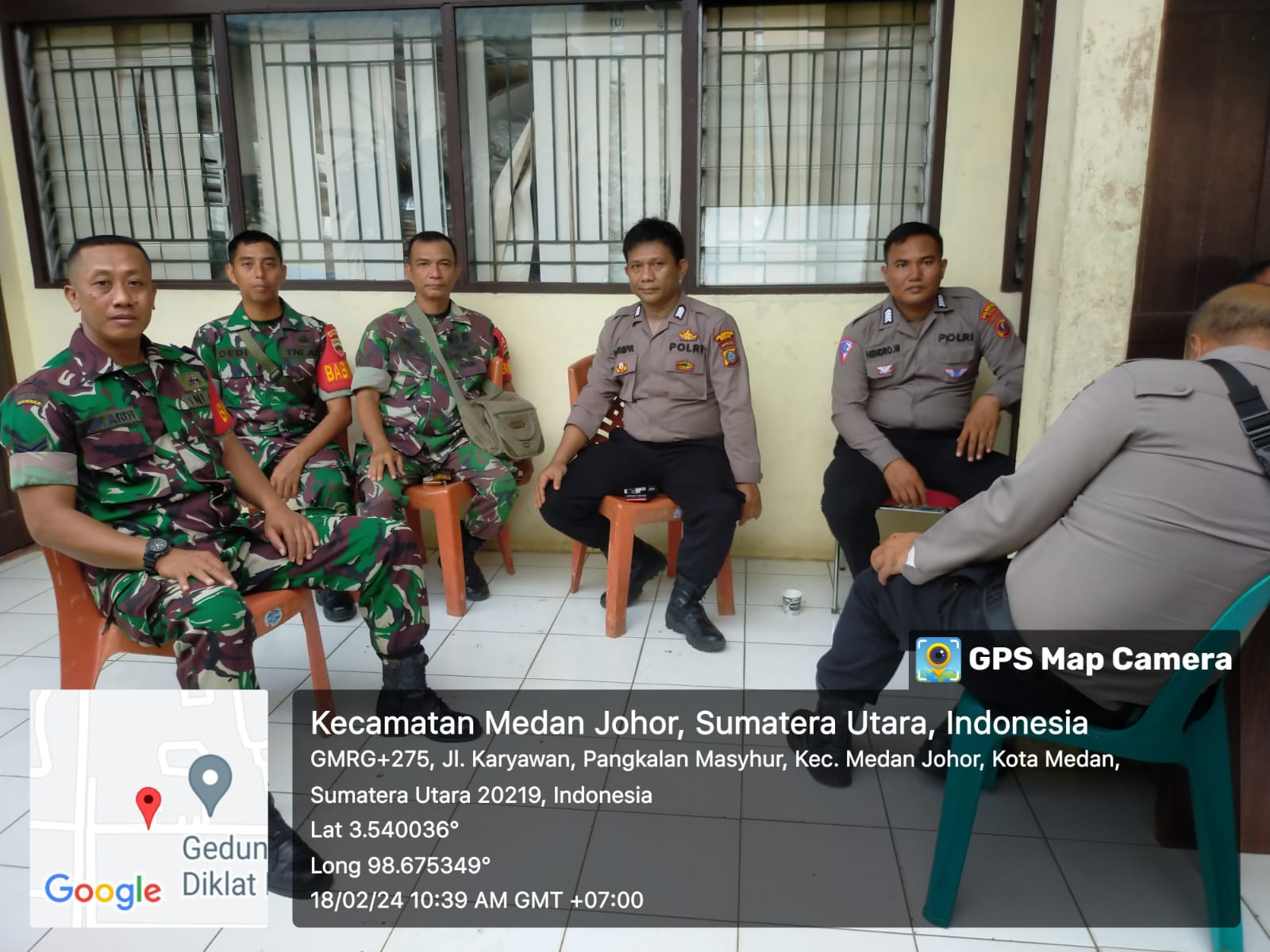Tiga orang anggota Koramil 0201-08/MA Kodim 0201/Medan yang Dipimpin Serma Edy Syahputra bersama Anggota Polsek Delitua pada Hari Minggu 18 Februari 2024 melaksanakan pengamanan dalam pelaksanaan penghitungan suara tingkat PPK Medan Johor. Bertempat di Gedung Balai Pertanian Kota Medan, Jalan AH Nasution, Kelurahan Pangkalan Mansyur, Kecamatan Medan Johor.
