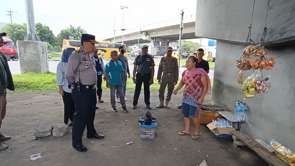 Personil Koramil 0201-08/MA Sertu Rudi Hermanto dan Kopda TM. Sidik bersama tim gabungan Tiga Pilar Kecamatan Medan Amplas melaksanakan operasi penertiban Jalan Sisingamangaraja wilayah Kecamatan Medan Amplas.