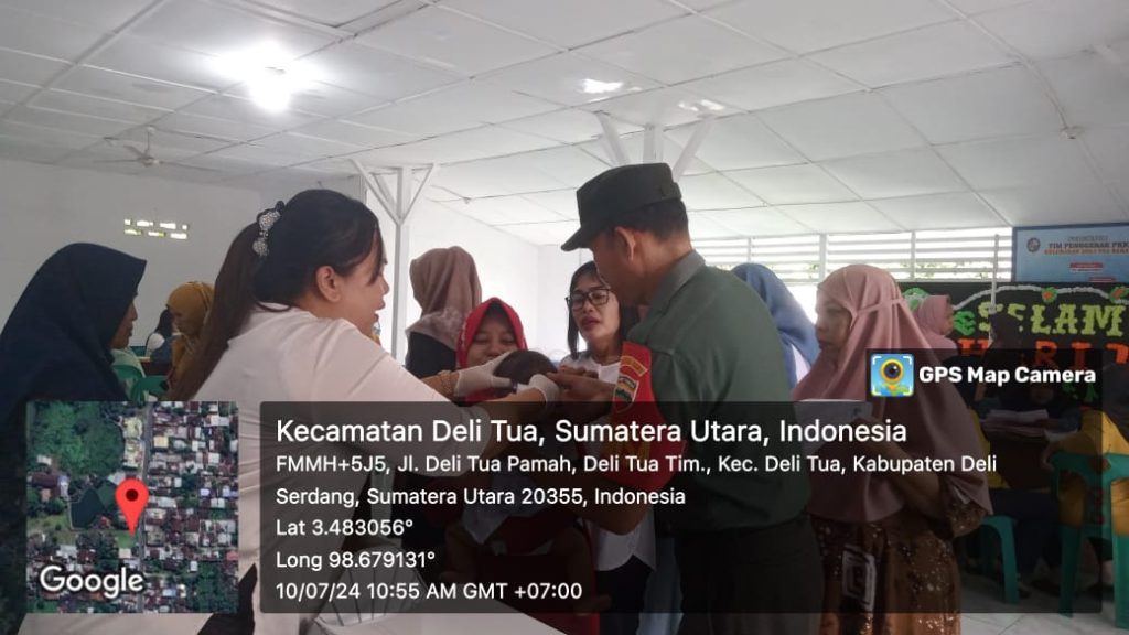 Kecamatan deli tua – Babinsa Koramil 15/ DT Sertu Sumpeno melaksanakan kegiatan pendampingan Pos Pelayanan Terpadu (Posyandu) di balai desa kelurahan deli tua Barat, Kec. Deli tua, Kab. Deli Serdang. Rabu (10/07/2024).