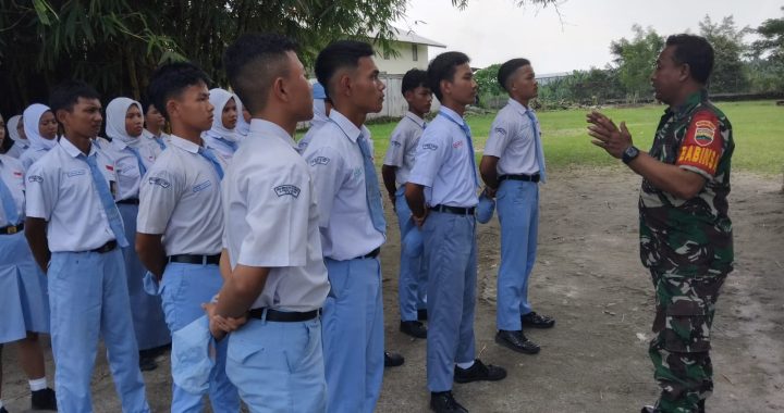 PATUMBAK – Babinsa Koramil 0201-15/DT peltu Bambang H dan sertu Isnandar memberikan pelatihan Peraturan Baris