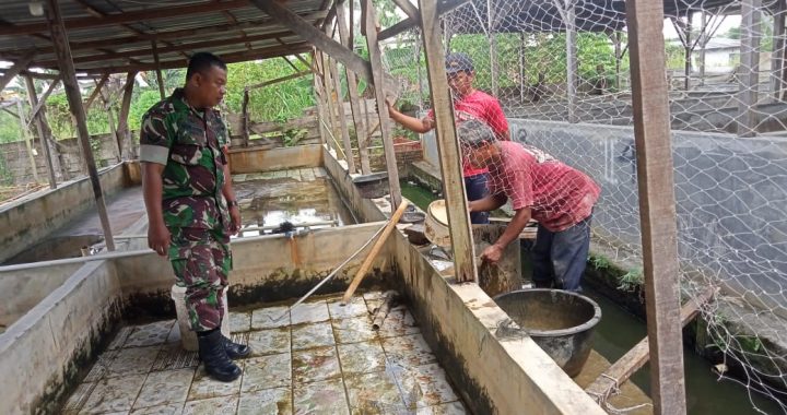 BABINSA KORAMIL 0201-13/PST SERTU NASRIL EFENDI BERIKAN MOTIVASI DI LOKASI PEMBIBITAN IKAN LELE DIDESA BINAAN