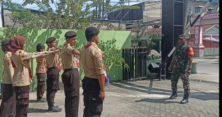 MEDAN – Babinsa Koramil 0201-10/MM Sertu Trisno Abadi Memberikan pembinaan kepada anggota Pramuka Saka Wira