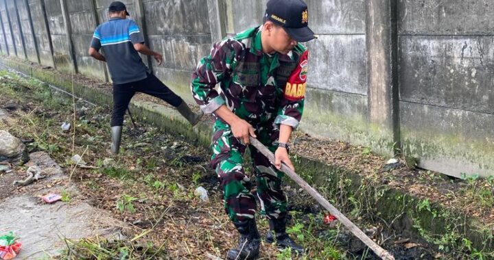Medan – Babinsa Keluhan tangkahan Koramil 0201-10/MM Serda Ardani Efendi melaksanakan kegiatan gotong royong bersama