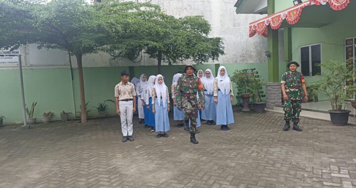 TANAMKAN BELA NEGARA DAN KEDISIPLINAN BABINSA RAMIL 0201-14/PB LATIH PBB PADA SISWA.