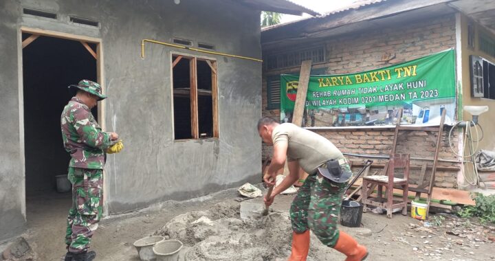 Medan labuhan – Komandan Koramil 0201-10/MM Kapten inf Rahimin beserta seluruh anggota laksanakan gotong royong