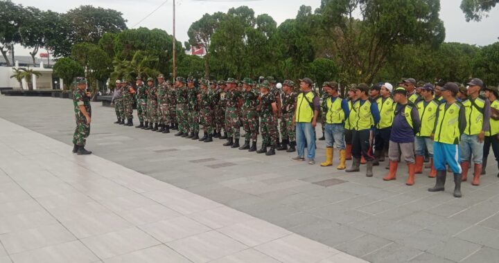 Medan labuhan – Komandan Koramil 0201-10/MM Kapten inf Rahimin beserta seluruh anggota laksanakan gotong royong