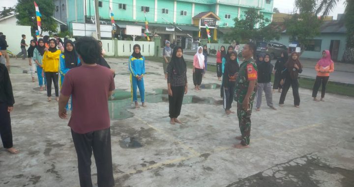 Mendukung kegiatan Wasbang dan Rasa cinta tanah air Babinsa Koramil 0102-12/HP Serka Zulkarnain, memberikan pelatihan