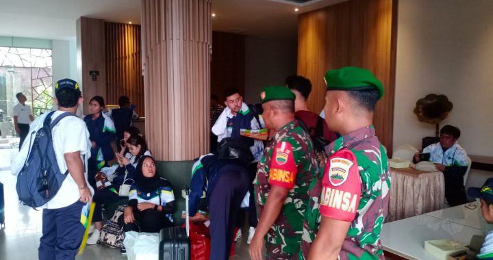 Babinsa Koramil 0201-05/MB Kodim 0201/Medan, Sertu Musliadi dan Serda Doni memonitor kedatangan atlit PON Ke