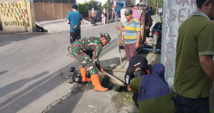 Personil Babinsa Koramil 0201-03/MD Serda Budi Wahyono bersama Muspika Kecamatan Medan Tembung bersama masyarakat melaksanakan