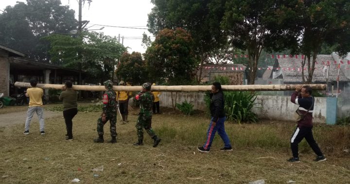 NAMO RAMBE–Koramil 0201-14/PB Kodim 0201/Medan melaksanakan kegiatan karya bakti pembersihan di Jambur Desa Kuta Tengah