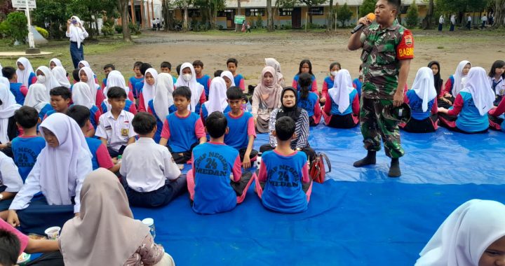 Medan Babinsa Koramil 0201-11/MD Kodim 0201/Medan Sertu Rudi Apriyanto memberikan motivasi kepada siswa siswi yang