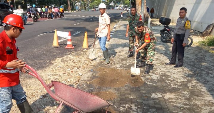 MEDAN 05/MB | Babinsa Koramil 0201-05/MB Sertu Nurwahyudi dan Serda Bambang melaksanakan gotong royong pembersihan