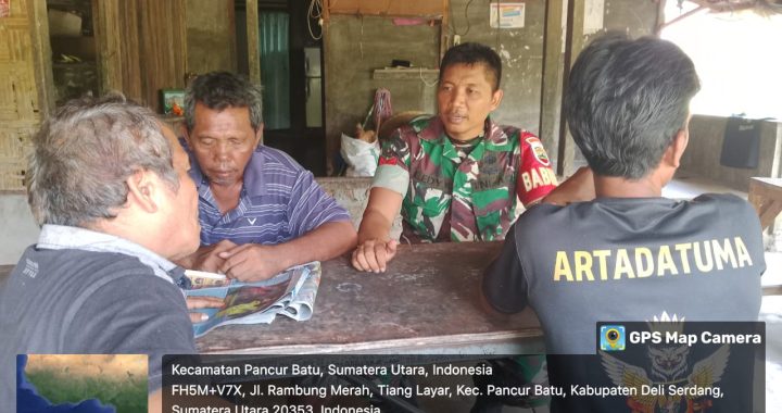 Pancur Baru – Babinsa Koramil 14/pancur batu,Serda Roy Ferdinand Sihotang melaksanakan Komunikasi Sosial (Komsos) dengan