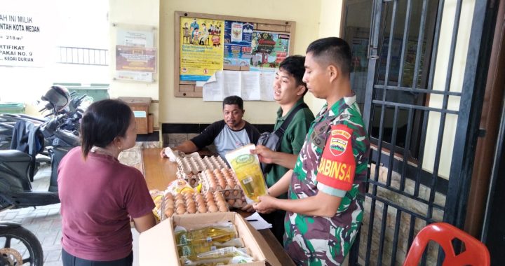 Medan : Babinsa Koramil 0201-08/MA Kodim 0201/Medan Sertu Dedi melaksanakan pendampingan dan monitoring pasar murah