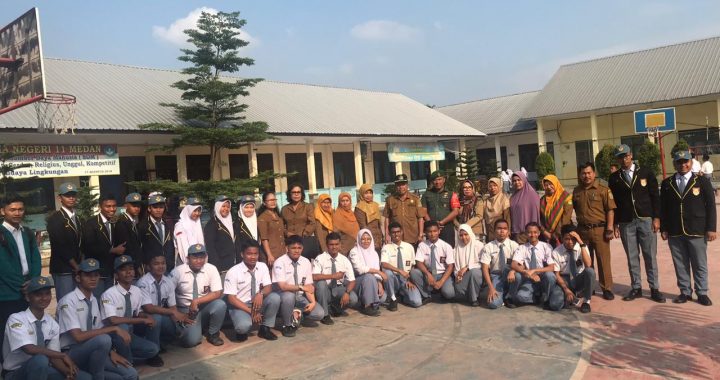 Jajaran Koramil 12/HP Upacara Bendera di SMA Swasta PAB Klumpang Kebun