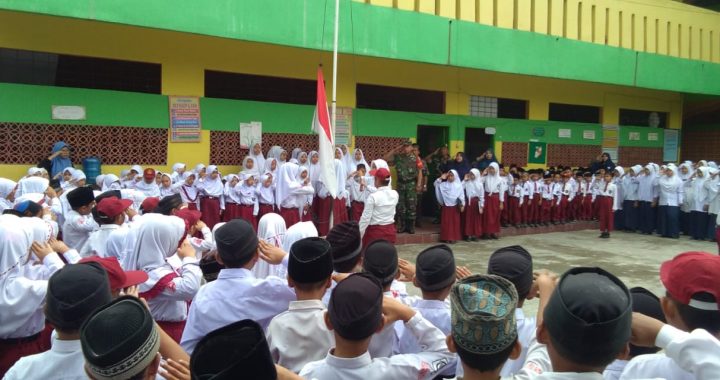 Komandan Koramil 14/PB Kapten Arh Kusten Sidabutar,memberikan pembekalan wawasan kebangsaan (Wasbang) dalam kegiatan Kadarkum dan