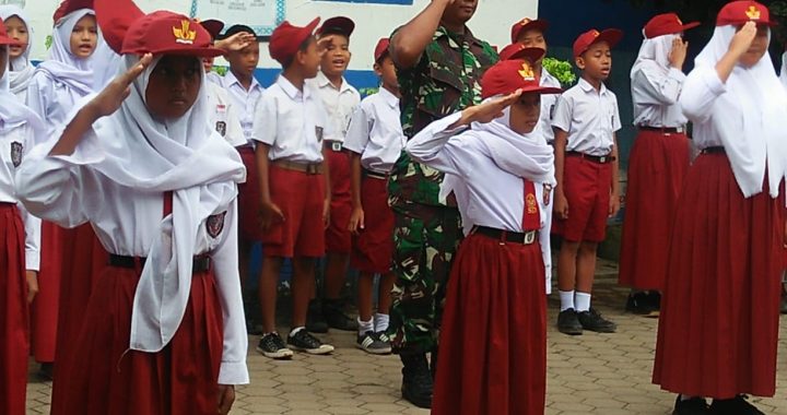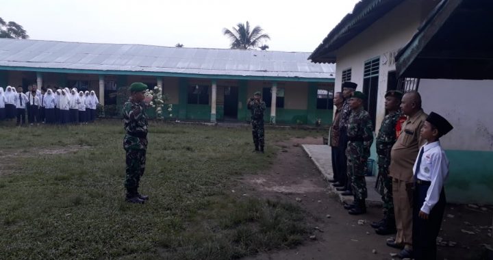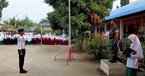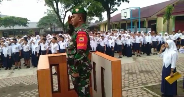 Medan | Dalam upaya meningkatkan jiwa patriotisme di lingkungan pelajar, Babinsa Koramil 08/MJ Kodim 0201
