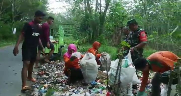 Medan | Mengajak masyarakat menjaga kebersihan lingkungan, Personil Koramil 07 / MT Kodim 0201 /