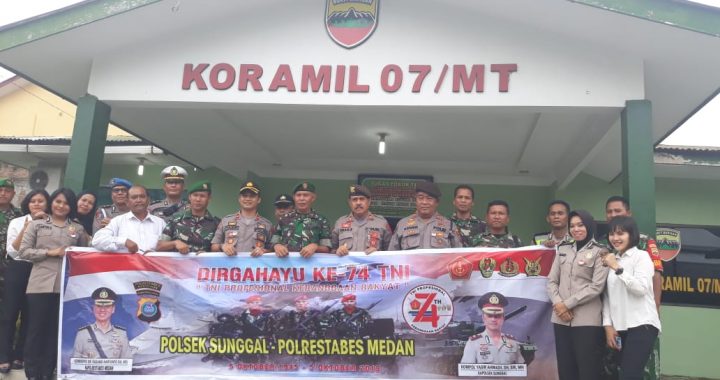 KUNJUNGI KANTOR KORAMIL 07/MT, KAPOLSEK SUNGGAL SAMPAIKAN DIRGAHAYU TNI KE-74