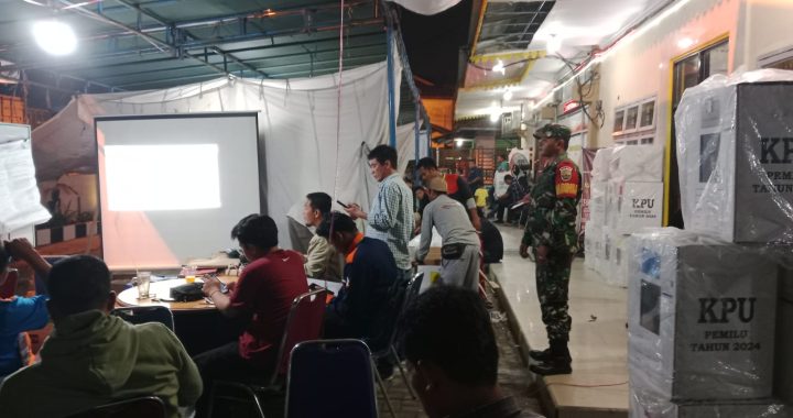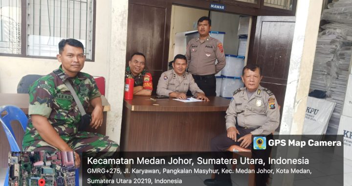 Medan Labuhan – Jajaran Babinsa Koramil 0201-10/MM melaksankan monitoring Rapat Pleno Terbuka Rekapitulasi Pemungutan Suara