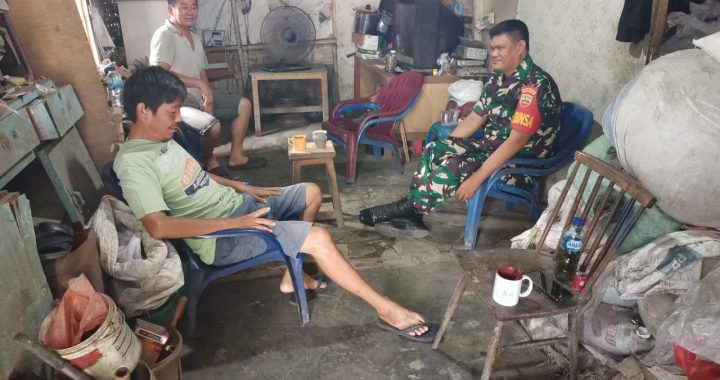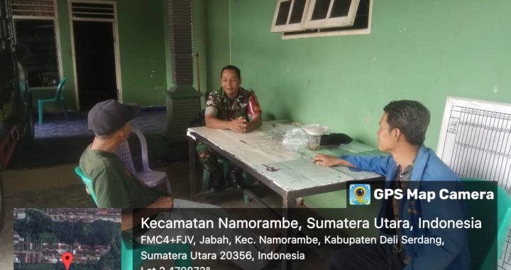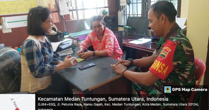 MEDAN.Babinsa Koramil 0201-07/MT Sertu Kasno Zeki melaksanakan kegiatan Komunikasi Sosial (Komsos) bersama Sekretaris Lurah dan