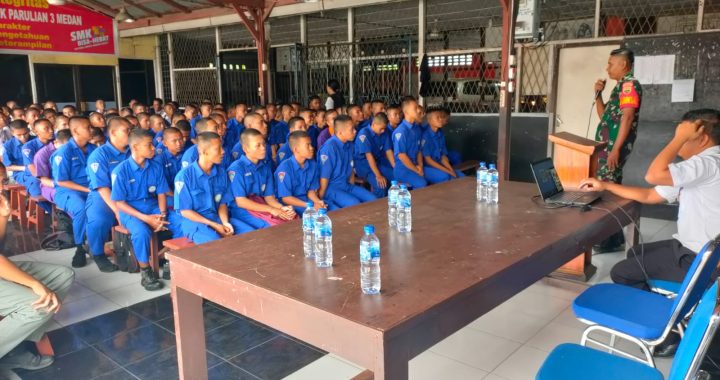 MEAN AMPLAS lDanramil 0201-08/MA Kapten Arh Henry Johan Nainggolan Beserta Babinsa memberikan Wasbang kepada Siswa