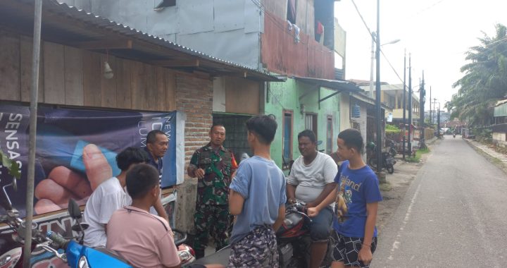 Babinsa kelurahan Mabar sertu Nanang anggota Koramil 0201-11/MD, Kodim 0201/Medan melaksanakan kegiatan komunikasi sosial (komsos)