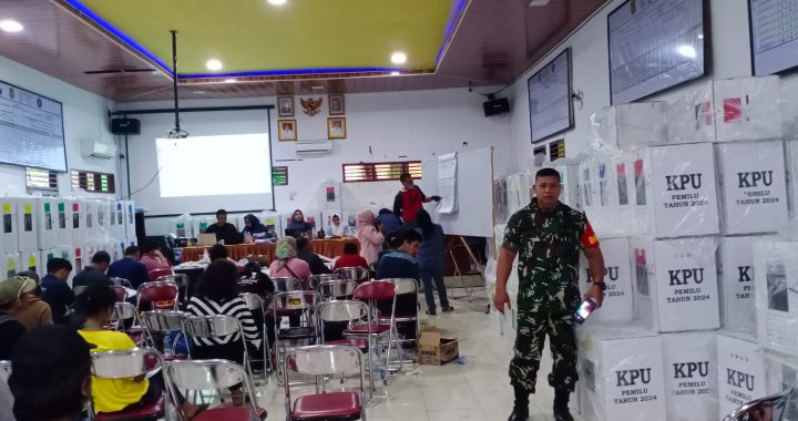 MEDAN 05/MB | Jajaran Babinsa Koramil 0201-05/MB melaksankan monitoring Rapat Pleno Terbuka Rekapitulasi Pemungutan Suara