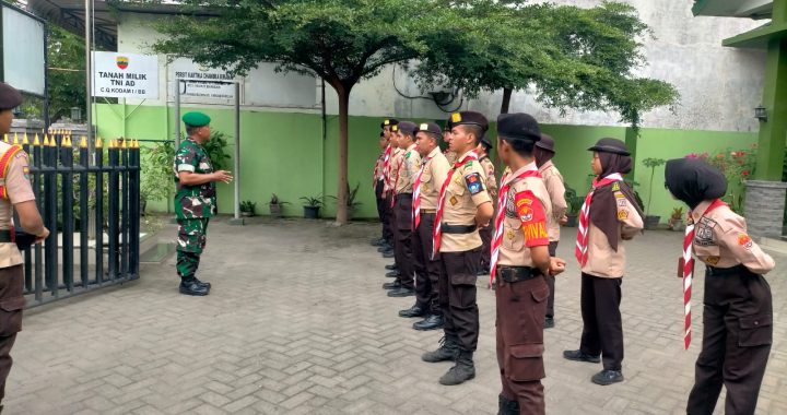 MEDAN – Babinsa Koramil 0201-10/MM Serka Parmiono Memberikan pembinaan kepada anggota Pramuka Saka Wira Kartika