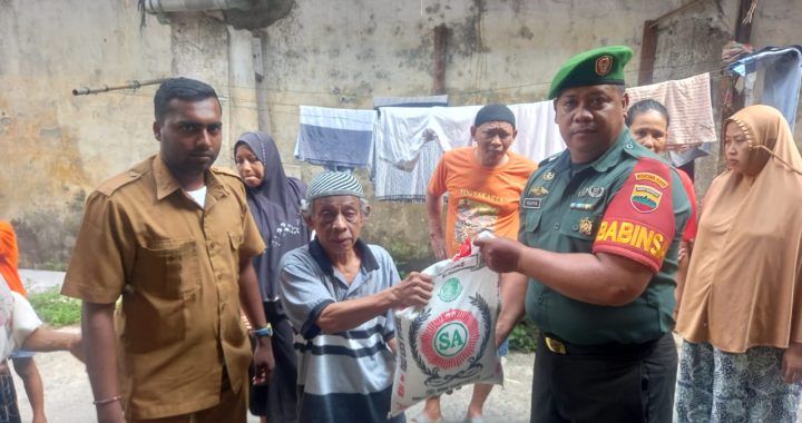Babinsa Koramil 0201-05/MB Kodim 0201/Medan Serda Taufik K melaksanakan kegiatan pendampingan pembagian sembako di Gg.