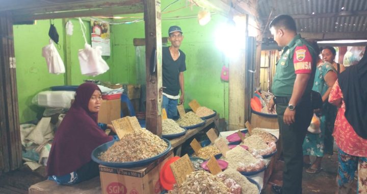 Babinsa Koramil 0201-03/MD Serda Junaidi Sibarani dalam rangka memantau serta mengetahui kestabilan harga jual Sembako