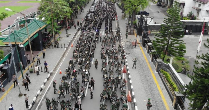 Medan | Patroli gabungan skala besar TNI-Polri di Medan digelar di Lapangan Benteng, Medan, Sabtu