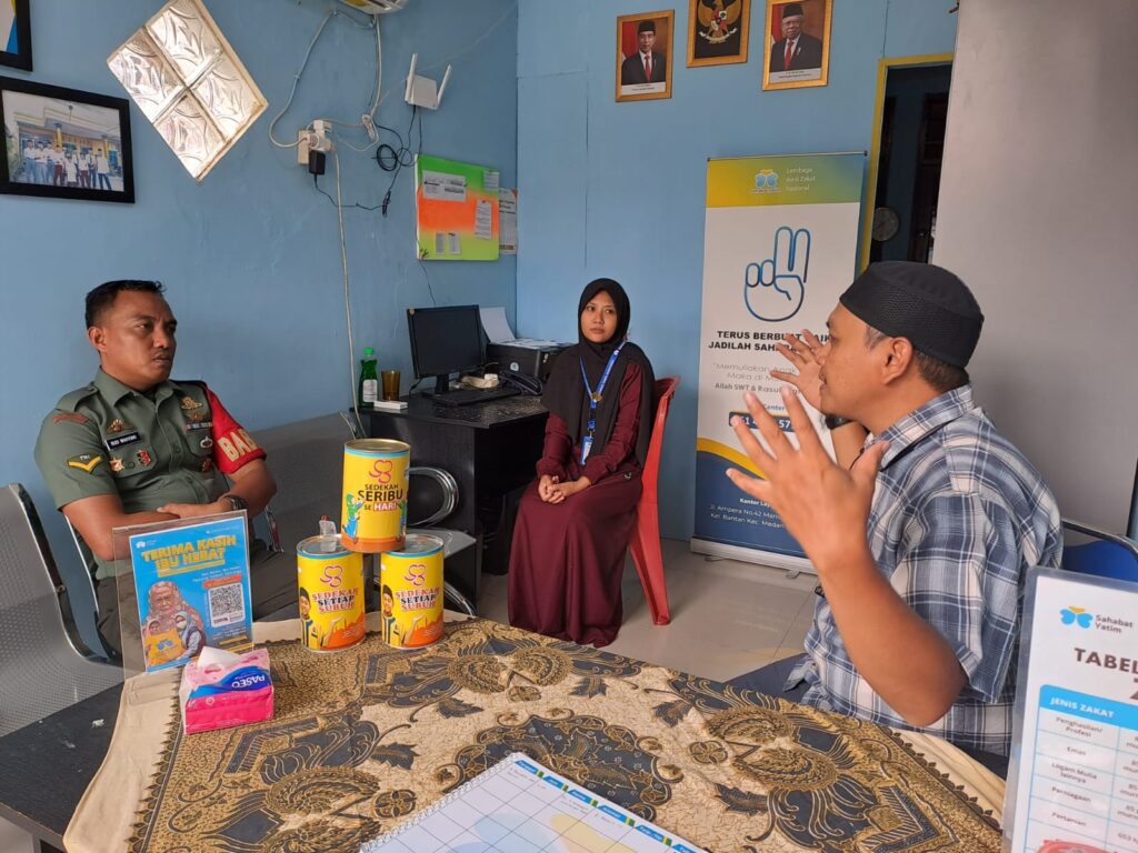 Selasa,5-12-2023 Babinsa Koramil 0201-03/MD Serda Budi Wahyono melaksanakan komsos kegiatan komsos di yayasan panti asuhan Jalan Ampera, pukul 13.50 WIB.